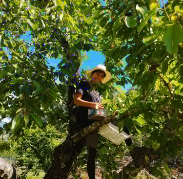 En 2020, cuando todo se detuvo, yo también me detuve. Perdí un trabajo y gané una certeza: quería vivir de otra manera. Más simple, más coherente, más en armonía con la naturaleza, así que como primer paso, volví a mis raíces, a Hervás. Entré en contacto con un terreno agrario, un viejo cerezal, un lugar que despertó en mí un hambre inmensa por seguir conociendo el mundo natural y formarme en ese inmenso mundo de la botánica. Comencé a estudiar y poco después, y por un golpe de suerte, descubrí la Permacultura, una forma de diseñar la vida con sentido, de sanar la tierra y de sanarnos con ella.